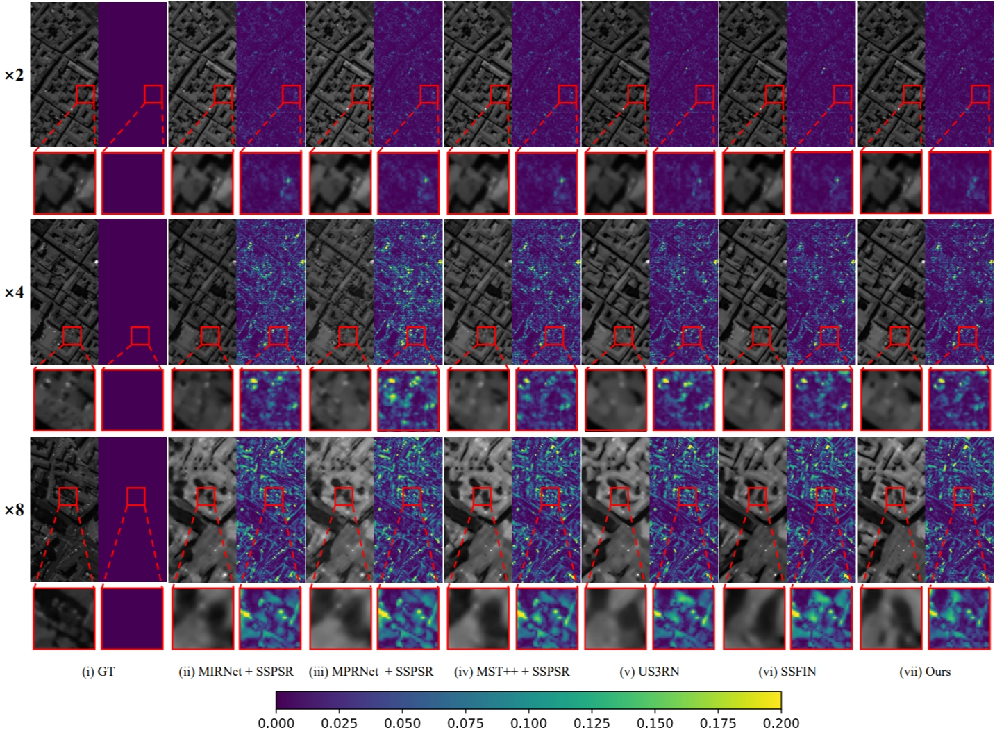 The architecture of our proposed HLNet is engineered as a three-stage pipeline designed to progressively refine image quality. The process commences within the Dense Feature Exactor (DFE), which establishes a foundational set of spatial and spectral characteristics from the source image. Subsequently, the Hybrid Feature Learning Module (HLM) takes on the crucial task of modeling the intricate interplay between these hybrid features while simultaneously elevating their spatial resolution to the desired scale. Finally, the synthesis of the output image is handled by our novel Hybrid Feature Reconstruction Module (HRM), which focuses on enforcing spectral coherence across distant bands to yield a more precise and detailed hyperspectral image. To ensure this outcome, the entire network is guided by a custom-designed interval loss function that specifically penalizes spectral disparities between non-adjacent bands, a constraint tailored to the unique nature of hyperspectral data.